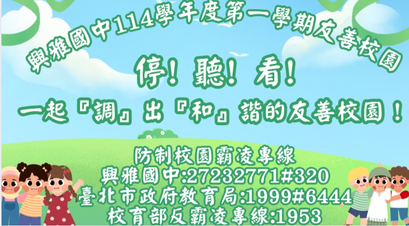 興雅國中114學年度第一學期友善校園 主題停! 聽! 看! 一起『調』出『和』諧的友善校園