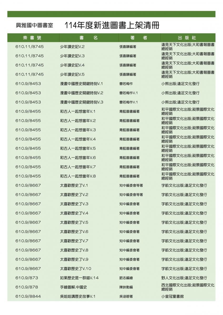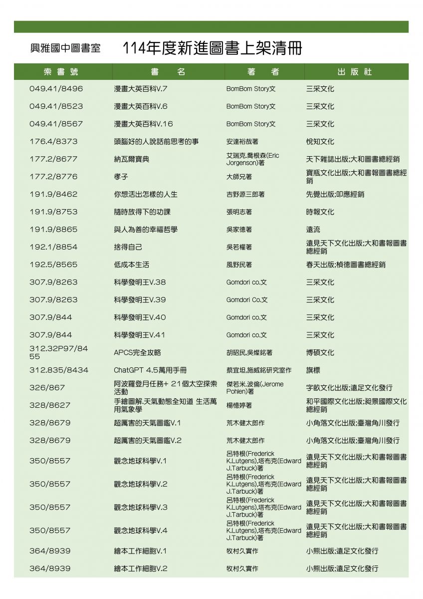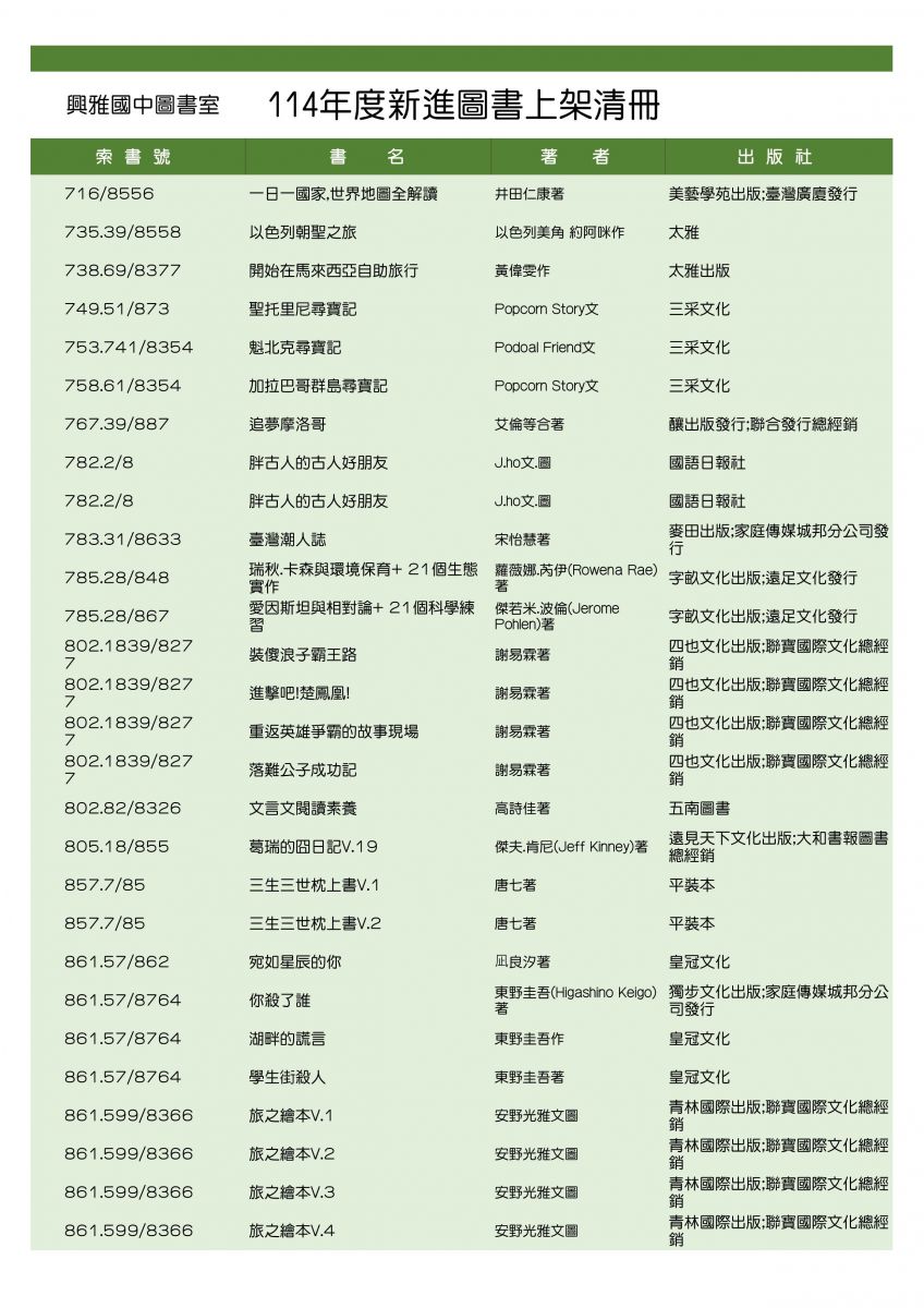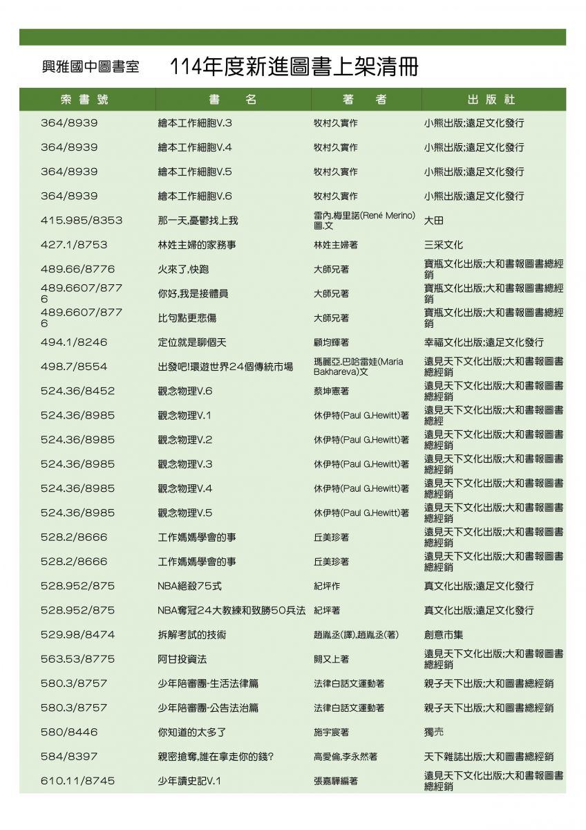 114年度新書上架,歡迎借閱。
