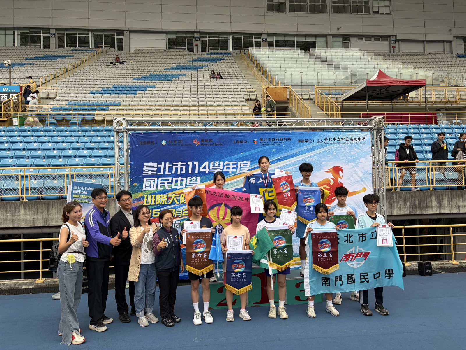 本校參加臺北市114學年度國中班際大隊接力錦標賽榮獲佳績,全校親師生同賀。
